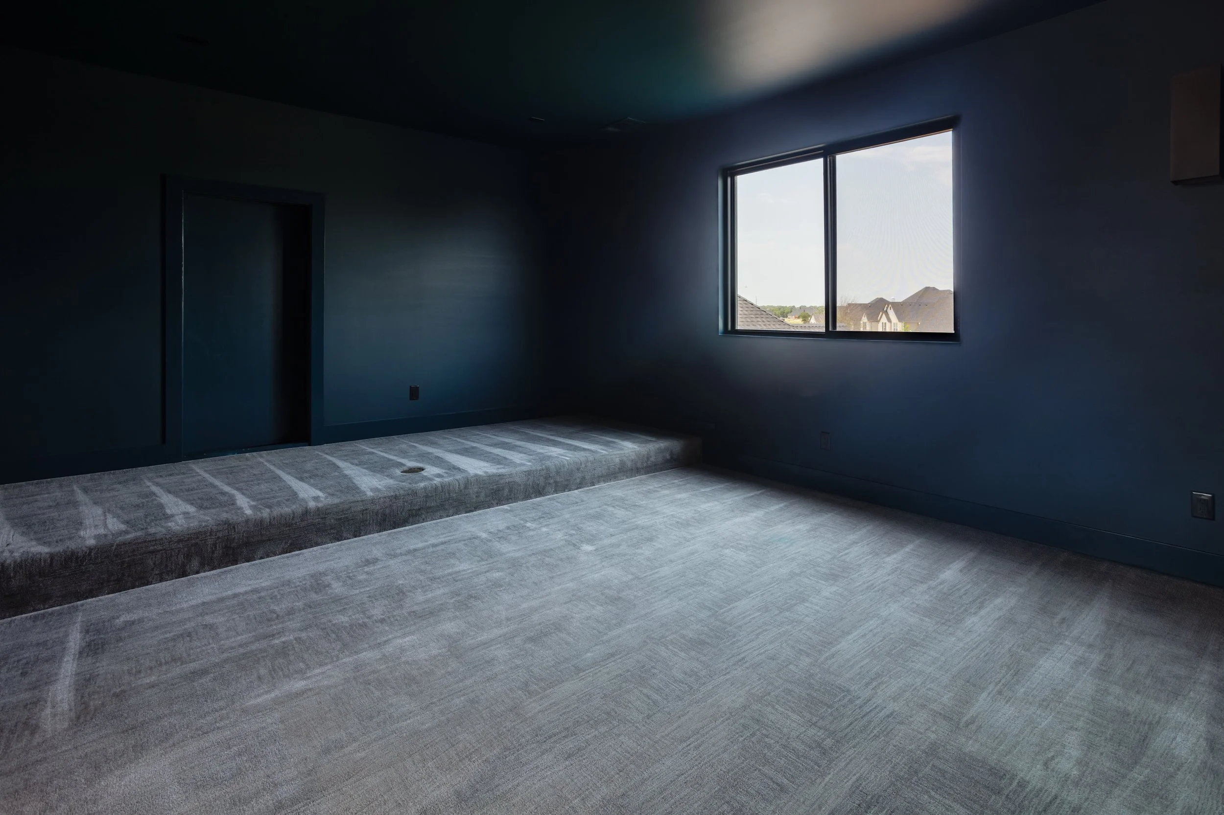 Inside, a stunning modern kitchen features wooden cabinets that provide warmth and character. The white countertops create a bright and clean look, while the black hardware adds a sleek contrast. A standout feature is the black farmhouse sink, which complements the overall aesthetic beautifully. The kitchen includes a spacious island, perfect for meal prep or casual dining, and a double oven that enhances functionality. Additionally, the large stainless-steel refrigerator adds a contemporary touch. This is a perfect kitchen, that's both stylish and practical!